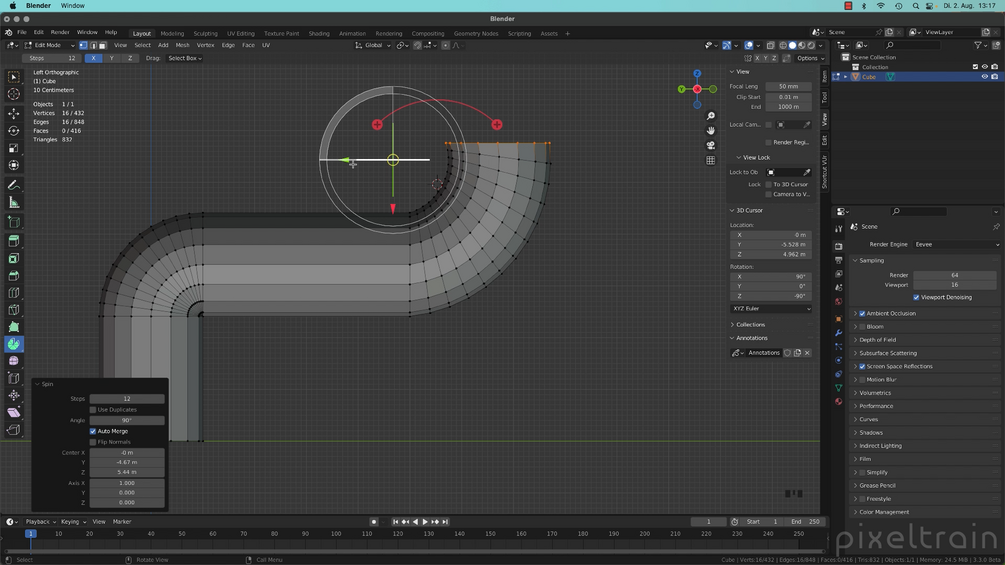 This publication "pixeltrain - Blender Fundamentals >> Fast Forward“ by Senior 3D & VFX trainer Helge Maus is a complete Introduction to Blender 3D.